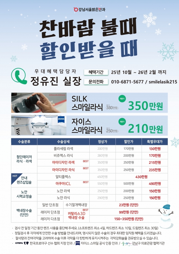 광운대학교 학생분들을 위한 스마일라식 등 시력교정 혜택안내-강남서울밝은안과